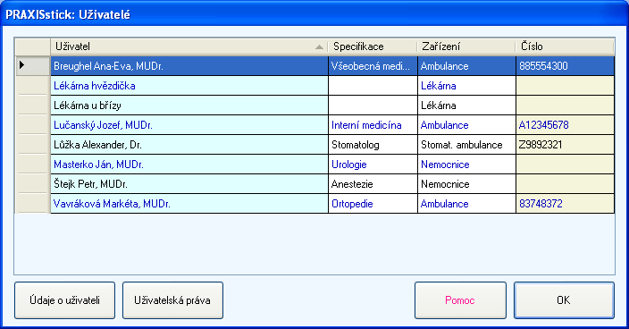 (např. zdravotnické zařízení, lékař, ...), tak se data uživatele automaticky zavedou